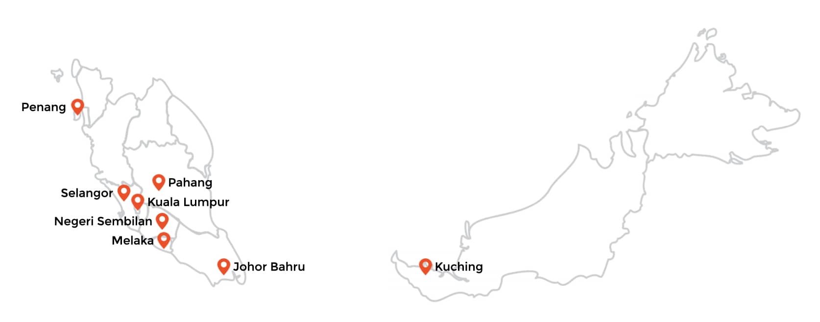 We deliver to Penang (Mainland & Island), Melaka, Kuching and Johor Bahru.